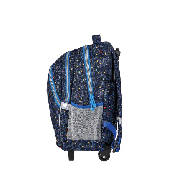 Školský batoh na kolieskach Smart Trolley Cars, Power Lap• kvalitný a odolný batoh na kolieskach• robustná a stabilná konštrukcia• vysúvacia rúčka, stabilné nôžky, dve kolieska, dva predné nastaviteľné popruhy• moderný dizajn, polyesterový materiál, nepremokavá tkanina• anatomicky tvarovaný chrbát pre jednoduchú cirkuláciu vzduchu• dve horné rukoväte, plne lemované a pohodlné popruhy• reflexné pásy, ktoré zvyšujú viditeľnosť a bezpečnosť v noci• vnútorná priečka s jednou veľkou kapsou a elastickou gumou• dve bočné elastické vrecká• silné a stabilné dno• teleskopická rúčka: 0-28-52 cm• materiál: polyester 600D• Hmotnosť: 2 160g, Objem: 32 L