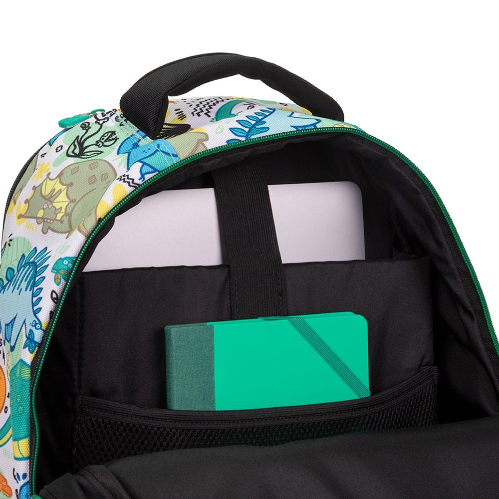6-zipsový školský batoh na kolieskach s kovovou výsuvnou rukoväťou v špeciálnej sérii Dinos. jedna hlavná priehradka s priehradkou na notebook 3 predné vrecká, jedno z nich s organizérom a…