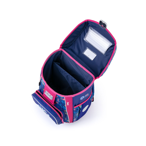 Aktovka sa skladá z jednej priestrannej komory, kam sa pohodlne zmestia všetky školské pomôcky pre deti v 1.a 2. ročníku. Dno má pevnú podstavu, chráni tým obsah pred prevrhnutím a vysypaním.