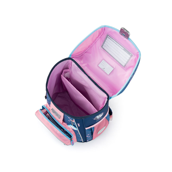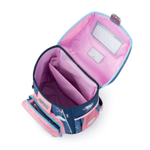 Aktovka sa skladá z jednej priestrannej komory, kam sa pohodlne zmestia všetky školské pomôcky pre deti v 1.a 2. ročníku. Dno má pevnú podstavu, chráni tým obsah pred prevrhnutím a vysypaním.
