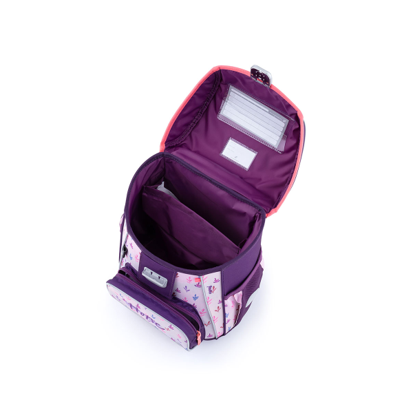 Aktovka sa skladá z jednej priestrannej komory, kam sa pohodlne zmestia všetky školské pomôcky pre deti v 1.a 2. ročníku. Dno má pevnú podstavu, chráni tým obsah pred prevrhnutím a vysypaním.