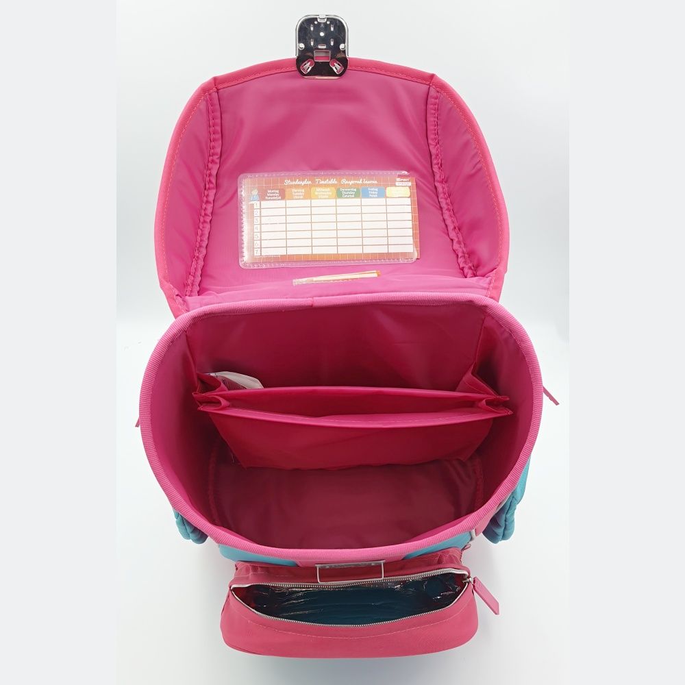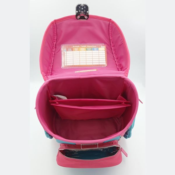 Sada obsahuje: školskú tašku, vrecko na prezúvky, 19-dielny peračník, puzdro na perá a peňaženku.