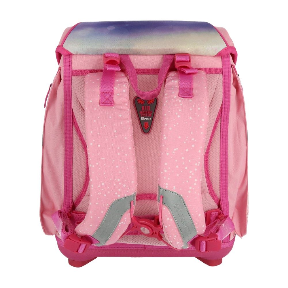 • Hlavná priehradka s dvoma ďalšími vreckami, elastický pás na uchytenie kníh a priestranný úložný priestor na A4 zošity