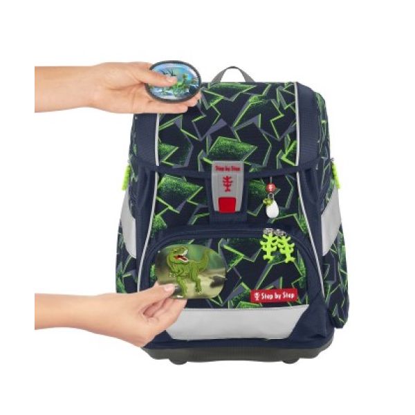 6-dielny set obsahuje: aktovku, naplnený peračník, puzdro, vrecko na úbor alebo prezuvky, šablóny a vymeniteľné obrázky Magic Mags Aktovka: - 2v1 aktovka a ruksak v jednom, aktovka ktorá sa stáva ruksakom ľahkým vytiahnutím bočných a čelných spevňujúcich šablón - šablóny s detskými motívmi, písmenami a číslicami, môžete po vybraní použiť pre maľovanie - ekologický výrobok, látka je vyrobená z recyklovaných PET fliaš (na 1 set sa spotrebuje 34 ks fliaš 0,5 l) - vyrobené v súlade s trvale udržateľným rozvojom a so zásadami organizácie bluesign®, ktorých sme hrdým partnerom - vyrobené v prevádzke s dobrými sociálnymi a bezpečnostnými podmienkami pre zamestnanca, člen nadácie Fair Wear - bez použitia škodlivej impregnácie - PFC FREE - reflexné plochy značky ORAFOL na všetkých viditeľných stranách aktovky (spredu, na bokoch a ramenných popruhoch), dostatočná bezpečnosť za šera a v tme - možnosť plynulého výškového nastavenia ramenných popruhov pomocou otočného mechanizmu vo vnútri aktovky, zaisťuje presné nastavenie ramenných popruhov priamo na chrbte dieťaťa - vkusné aplikácie - odnímateľné a vymeniteľné motívy Magic Mags (3-dielny set - 2x 3D obrázok, 1x ozdobná šnúrka) - prehľadná jednokomorová aktovka - ergonomicky tvarovaná chrbtová časť s mäkkým priedušným polstrovaním - polstrované, nastaviteľné popruhy na ramená v tvare S (nezarezávajú sa do ramien, dobre a pevne sedia a ľahko sa s nimi manipuluje) - háčiky na popruhu pre zavesenie koncov popruhu - nastaviteľné pásky na ramennom popruhu, slúžia k dokonalému pritiahnutiu aktovky k chrbtu dieťaťa - odnímateľný bedrový pás pre optimálne rozloženie hmotnosti aktovky medzi ramená a bedrá - odnímateľný výškovo nastaviteľný hrudný popruh, značková pracka YKK - DOKONALÉ POLSTROVANIE CHRBTOVEJ ČASTI A VÝŠKOVO A DĹŽKOVO NASTAVITEĽNÉ POLSTROVANÉ POPRUHY ZARUČUJÚ ZDRAVÝ VÝVOJ CHRBTA DIEŤAŤA, PRETO ŠKOLSKÉ AKTOVKY Step by Step ZÍSKALI CERTIFIKÁT AGR - rukoväť - značkový magnetický uzáver od firmy FIDLOCK - pre deti ľahké otváranie a zatváranie aktovky - izolované predné vrecko (pre studené alebo teplé jedlo a nápoje) - bočné vrecká na fľašku s nápojom, zatváranie na zips - priestranný hlavný priečinok s vnútorným priečinkom, ktorý je určený na ťažšie predmety (napr. učebnice), zaistí sa tak rovnomerné rozloženie hmotnosti - stabilné vodeodolné dno aktovky s nožičkami pre lepšiu stabilitu a ochranu pred vlhkom a špinou - možnosť objednať pršiplášť (obj. č. 25978) - objem. 19 l, hmotnosť bez odnímateľných komponentov: 1200 g , nosnosť: 7 kg, vonkajšie rozmery: h.21 x š.29,5 x v.37,5 cm Peračník: - značkové ceruzky (nemecká zn . Eberhard Faber) - 7 hrubých trojhranných ceruziek s nelámavými tuhami, 12 tenkých trojhranných ceruziek, ceruzka, pravítko rovné, pravítko trojuholníkové, guma, dvojité strúhadlo, rozvrh hodín, zapínanie na zips Puzdro: - na školské pomôcky, napr. perá, ceruzky, nožnice... - zapínanie na zips Vrecko na úbor alebo prezuvky: - zatvorenie utiahnutím šnúrky, predné vrecko - zapínanie na zips