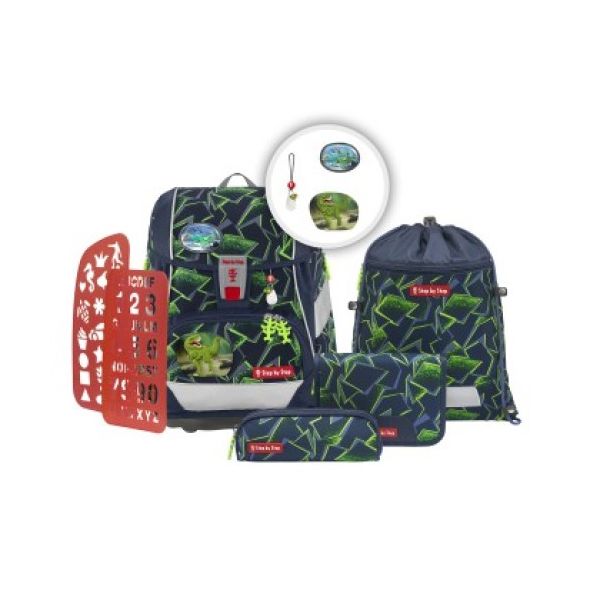 Školská aktovka/ruksak 2V1 PLUS pre prváčikov - 6-dielny Neskrotný T-Rex