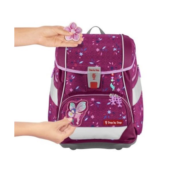 6-dielny set obsahuje: aktovku, naplnený peračník, puzdro, vrecko na úbor alebo prezuvky, šablóny a vymeniteľné obrázky Magic Mags Aktovka: - 2v1 aktovka a ruksak v jednom, aktovka ktorá sa stáva ruksakom ľahkým vytiahnutím bočných a čelných spevňujúcich šablón - šablóny s detskými motívmi, písmenami a číslicami, môžete po vybraní použiť pre maľovanie - ekologický výrobok, látka je vyrobená z recyklovaných PET fliaš (na 1 set sa spotrebuje 34 ks fliaš 0,5 l) - vyrobené v súlade s trvale udržateľným rozvojom a so zásadami organizácie bluesign®, ktorých sme hrdým partnerom - vyrobené v prevádzke s dobrými sociálnymi a bezpečnostnými podmienkami pre zamestnanca, člen nadácie Fair Wear - bez použitia škodlivej impregnácie - PFC FREE - reflexné plochy značky ORAFOL na všetkých viditeľných stranách aktovky (spredu, na bokoch a ramenných popruhoch), dostatočná bezpečnosť za šera a v tme - možnosť plynulého výškového nastavenia ramenných popruhov pomocou otočného mechanizmu vo vnútri aktovky, zaisťuje presné nastavenie ramenných popruhov priamo na chrbte dieťaťa - vkusné aplikácie - odnímateľné a vymeniteľné motívy Magic Mags (3-dielny set - 2x 3D obrázok, 1x ozdobná šnúrka) - prehľadná jednokomorová aktovka - ergonomicky tvarovaná chrbtová časť s mäkkým priedušným polstrovaním - polstrované, nastaviteľné popruhy na ramená v tvare S (nezarezávajú sa do ramien, dobre a pevne sedia a ľahko sa s nimi manipuluje) - háčiky na popruhu pre zavesenie koncov popruhu - nastaviteľné pásky na ramennom popruhu, slúžia k dokonalému pritiahnutiu aktovky k chrbtu dieťaťa - odnímateľný bedrový pás pre optimálne rozloženie hmotnosti aktovky medzi ramená a bedrá - odnímateľný výškovo nastaviteľný hrudný popruh, značková pracka YKK - DOKONALÉ POLSTROVANIE CHRBTOVEJ ČASTI A VÝŠKOVO A DĹŽKOVO NASTAVITEĽNÉ POLSTROVANÉ POPRUHY ZARUČUJÚ ZDRAVÝ VÝVOJ CHRBTA DIEŤAŤA, PRETO ŠKOLSKÉ AKTOVKY Step by Step ZÍSKALI CERTIFIKÁT AGR - rukoväť - značkový magnetický uzáver od firmy FIDLOCK - pre deti ľahké otváranie a zatváranie aktovky - izolované predné vrecko (pre studené alebo teplé jedlo a nápoje) - bočné vrecká na fľašku s nápojom, zatváranie na zips - priestranný hlavný priečinok s vnútorným priečinkom, ktorý je určený na ťažšie predmety (napr. učebnice), zaistí sa tak rovnomerné rozloženie hmotnosti - stabilné vodeodolné dno aktovky s nožičkami pre lepšiu stabilitu a ochranu pred vlhkom a špinou - možnosť objednať pršiplášť (obj. č. 25978) - objem. 19 l, hmotnosť bez odnímateľných komponentov: 1200 g , nosnosť: 7 kg, vonkajšie rozmery: h.21 x š.29,5 x v.37,5 cm Peračník: - značkové ceruzky (nemecká zn . Eberhard Faber) - 7 hrubých trojhranných ceruziek s nelámavými tuhami, 12 tenkých trojhranných ceruziek, ceruzka, pravítko rovné, pravítko trojuholníkové, guma, dvojité strúhadlo, rozvrh hodín, zapínanie na zips Puzdro: - na školské pomôcky, napr. perá, ceruzky, nožnice... - zapínanie na zips Vrecko na úbor alebo prezuvky: - zatvorenie utiahnutím šnúrky, predné vrecko - zapínanie na zips