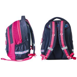 Chceš byť Cool? Predstavujeme Vám jedinečné dizajny kolekcie POP School. • moderný dizajn, polyesterový odolný materiál • dva predné nastaviteľné popruhy, na spodnej časti • horná rukoväť, plne lemovaná a pohodlné popruhy • jedna hlavná priehradka a predná kapsa na zips • objem 23 L