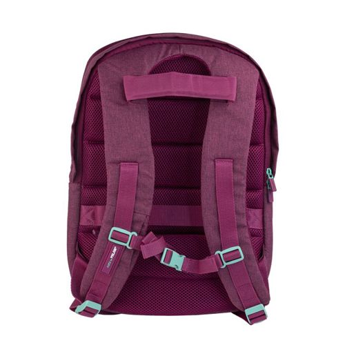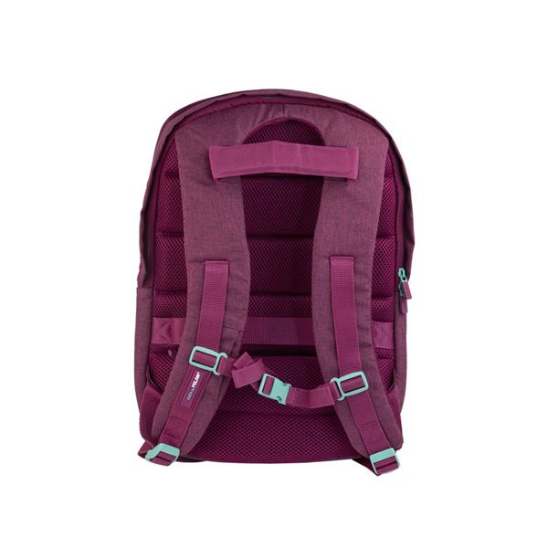 Polotuhý batoh. Špeciálna séria Igloo II, vínovej farby s tyrkysovými detailmi. Zvýšenú ochranu poskytuje jeho tvar a polotuhý materiál. S 2 priehradkami na zips: veľká kapacita a ľahko prístupná hlavná priehradka s vnútornou sieťovou kapsou a samostatná ochranná priehradka na notebook. Skryté zadné vrecko a vrecko na kartu s rýchlym prístupom. Nastaviteľné hrudné popruhy pre lepšiu komoditu. Nastaviteľné popruhy, polstrovaný a priedušný chrbát, vystužená základňa a rukáv vozíka. Zloženie látky: polyester a vonkajšia látka EVA, vnútorná podšívka z polyesteru. Miery: 44 x 32 x 20 cm. Objem: 23 litrov.