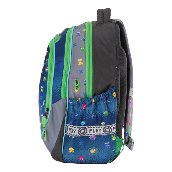 - 2 bočné vrecká na fľašu s vodou alebo malé školské potreby