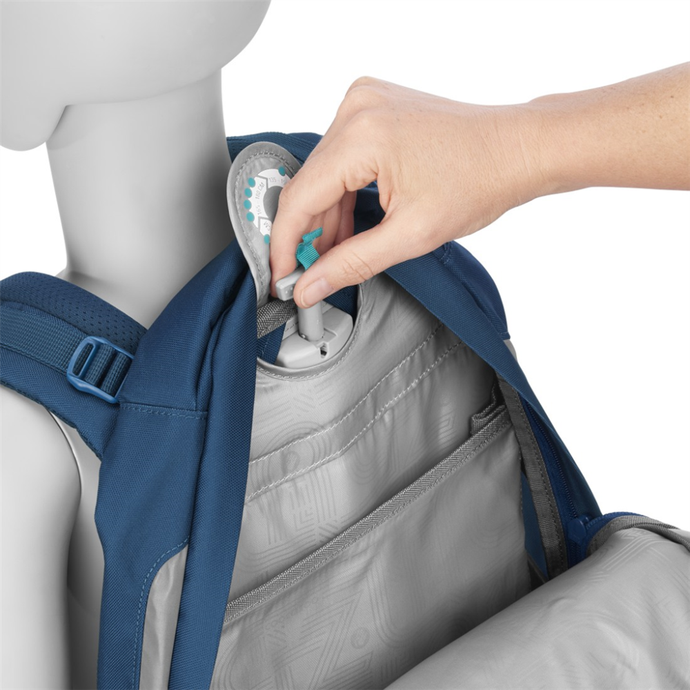 · výškovo nastaviteľné polstrované ramenné popruhy pomocou otočného mechanizmu vo vnútri ruksaku