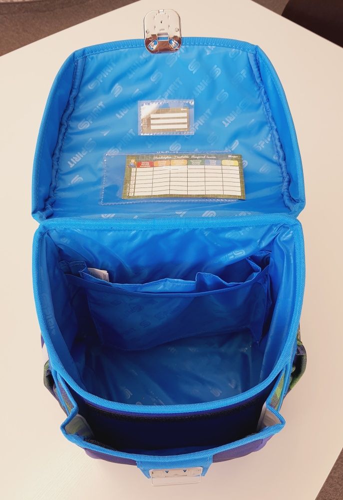 • rozvrh hodín a menovka pod zatváracím vekom tašky