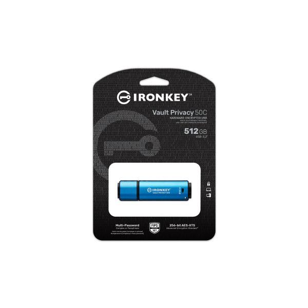 Kingston IronKey™ Vault Privacy radu 50C sú špičkové disky USB Type-C®, ktoré zaisťujú zabezpečenie Enterprice-Grade úrovne pomocou 256-bitového hardvérového šifrovania AES s certifikáciou FIPS 197 v režime XTS, vrátane zabezpečenia proti BadUSB pomocou digitálne podpísaného firmvéru a ochrany. Na VP50 boli vykonané skúšky prelomenia pre zabezpečenie na Enterprice-Grade úrovni Vzhľadom k tomu, že sa jedná o šifrované úložisko pod fyzickou kontrolou užívateľa, je rad VP50 pri ochrane dať lepší ako používanie internetu a cloudových služieb.