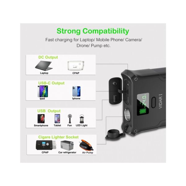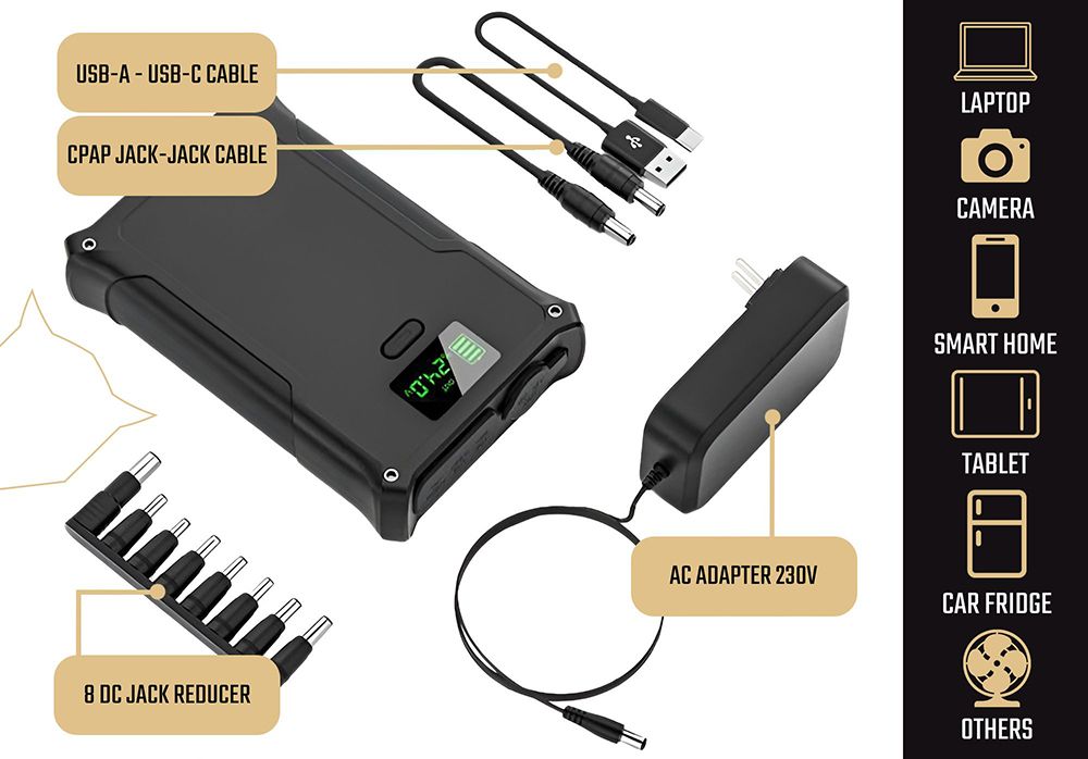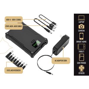 S kapacitou 38400 mAh (138Wh) a maximálnym výkonom až 160 W spolehlivo napája širokú škálu zariadení - od mobilných telefónov cez notebooky až po 12V spotrebiče. Ponúka výstupy USB-A, USB-C, DC-JACK pre notebooky a cigaretovú zásuvku.