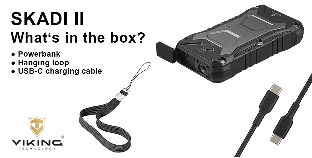 S našou outdoorovou powerbankou Viking SKADI II môžete byť vždy pripravení na všetky výzvy, ktoré vám príroda môže priniesť. Nezáleží na tom, aké náročné sú podmienky, táto powerbanka vám poskytne potrebnú energiu a spoľahlivosť, ktorú potrebujete, aby ste mohli byť napojení na svet, kdekoľvek sa nachádzate.