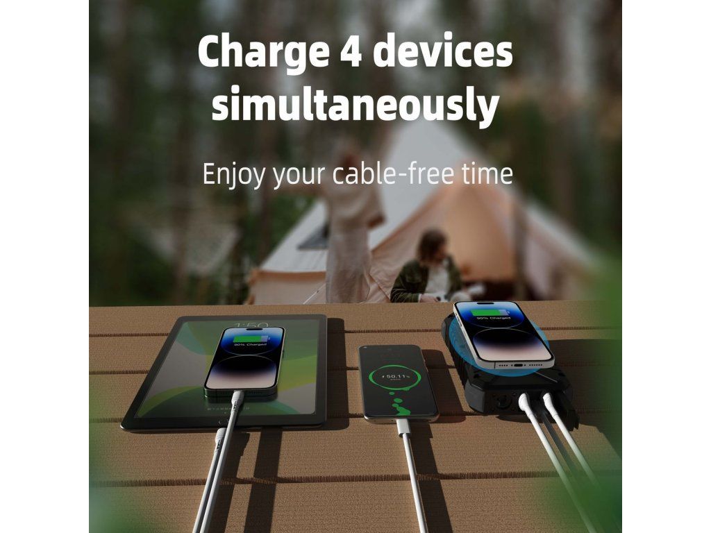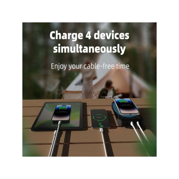 Vďaka podpore rýchlonabíjania PD30W nemusíte zbytočne dlho čakať na plné nabitie powerbanky a môžete rovno vyraziť za dobrodružstvom. Rýchle nabíjanie podporujú aj výstupné porty USB-A a USB-C. S týmto výkonným zdrojom energie budete mať vždy dostatok elektrického výkonu, aby ste udržali svoje zariadenia v prevádzke.?? Wireless bezdrôtové nabíjanie 15W sa vám zase môže hodit, ak sa ocitnete v situácii bez kábla.