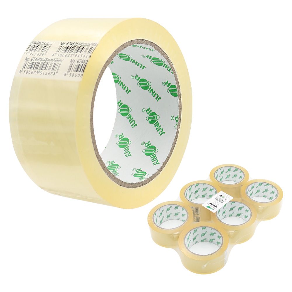Nízkohlučná lepiaca páska, návin 66 m, šírka 48 mm. Použiteľná do bežných odvíjačov. Hrúbka: 50 mic.
