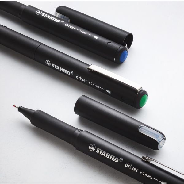 Prémiový jemný liner STABILO dr!ver je dokonalým doplnkom pre všetky príležitosti písania. Či už v kancelárii, v triede alebo doma - jemný liner je nadčasový, jednoduchý a veľmi spoľahlivý písací nástroj.