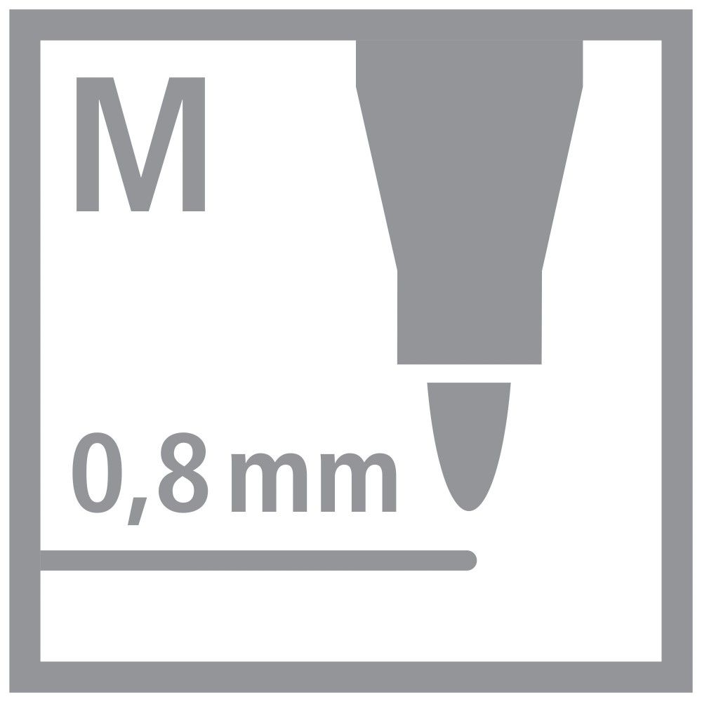 Stredný hrot so šírkou stopy 0,8 mm poskytuje hladké a ľahké písanie. Moderný čierny dizajnový liner má aj kovový klip, ktorý umožňuje jeho pripevnenie k taške alebo notebooku. V sade so štyrmi farbami (červenou, zelenou, modrou a čiernou) je vynikajúcou voľbou pre dlhší čas strávený písaním alebo kreslením.