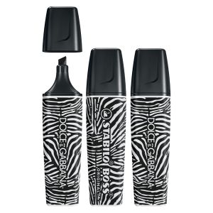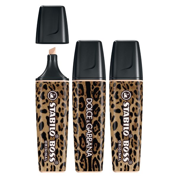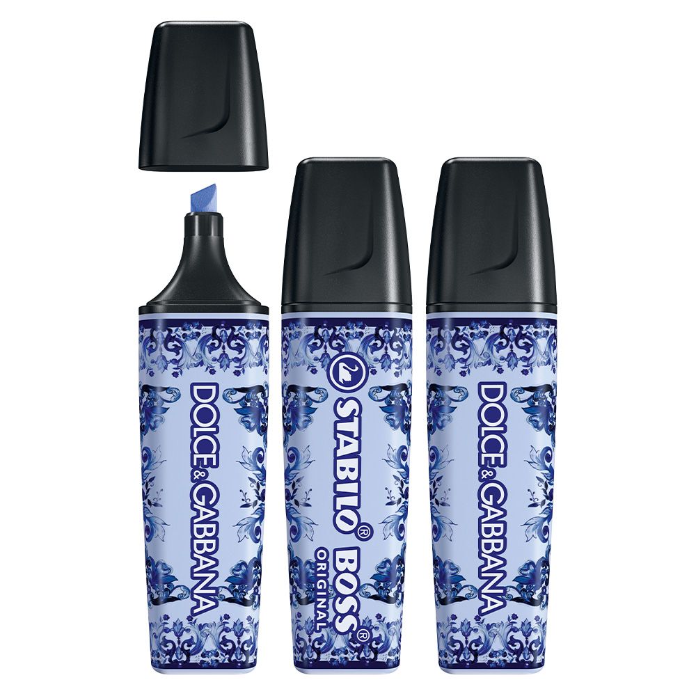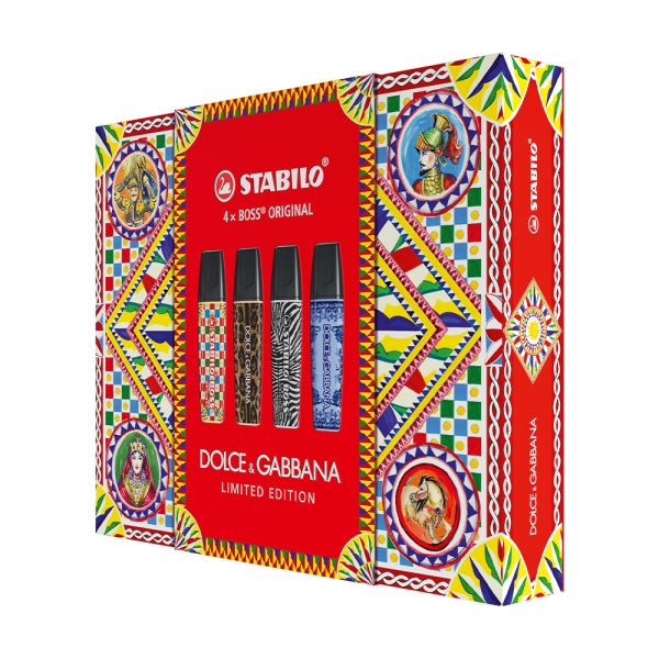 Limitovaná edícia STABILO BOSS ORIGINAL x DOLCE&GABBANA ponúka 3 obľúbené pastelové farby známeho zvýrazňovača a tiež čierny marker. Každý zvýrazňovač má celoplošnú potlač v jedinečnom a pútavom dizajne DOLCE&GABBANA. Či už ako darček, dekorácia, zberateľský kúsok alebo na špeciálne kreatívne projekty: v kvalitnom prémiovom boxe v dizajne Caretto Siciliano s magnetickým uzatváraním sa exkluzívna súprava stane pútačom na každom stole. Pri zvýrazňovaní dôležitých bodov alebo zapisovaní dôležitých myšlienok zaujme zvýrazňovač STABILO BOSS ORIGINAL svojou spoľahlivosťou a kvalitou.