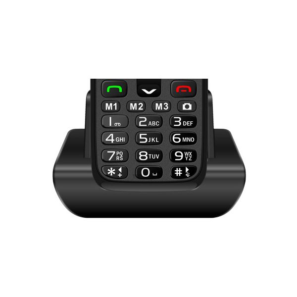 Telefón je dodávaný s praktickým nabíjacím stojanom, do ktorého stačí telefón zasunúť a nabíjanie batérie sa spustí automaticky, čo uľahčuje a spríjemňuje každodenné používanie. Vďaka výdrži batérie až 8 dní je telefón stále pripravený na použitie bez toho, aby používateľ musel často hľadať zásuvku na nabíjanie.