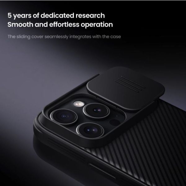 Nillkin CamShield PRO je unikátny kryt s posuvným krytom čočky fotoaparátu. Navyše je oproti klasickému CamShield unikátny v tom, že sa skladá z dvoch materiálov. Hrbát krytu je vyrobený z pevného a odolného plastu a to vrátane krytu fotoaparátu. Rámček krytu je vyrobený z mäkčeného TPU plastu, pre najlepšiu ochranu okrajov a rohov telefónu.