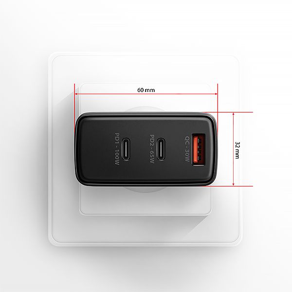Telo napájacieho adaptéra má príjemný tvar a kompaktnú veľkosť. V porovnaní s klasickými nabíjacími adaptérmi s rovnakými parametrami je veľkosť tejto nabíjačky až o polovicu menšia. Kombinácia malých rozmerov dosiahnutých pomocou GaN technológie a širokého rozsahu vstupného napätia robí z tejto nabíjačky ideálneho pomocníka na cesty.