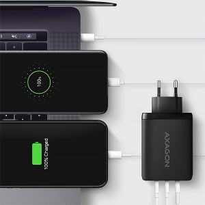 Cestovná nabíjačka do siete AXAGON ACU-DPQ100 GaN umožňuje rýchle nabíjanie až troch mobilných zariadení súčasne. Vďaka celkovému výkonu 100W dokáže nabíjačka dobíjať notebooky, telefóny a ďalšie mobilné zariadenia najvyššou možnou rýchlosťou. Adaptér ponúka nielen štandardný USB-A konektor, ale aj dva oboustranné USB-C konektory.
