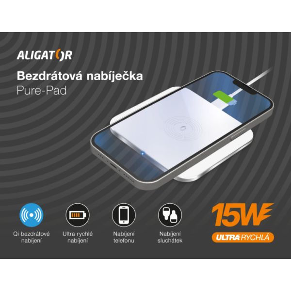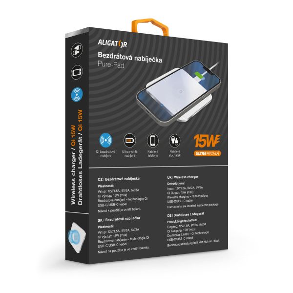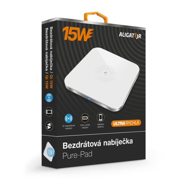 Technológia Qi používa na prenos elektrickej energie elektromagnetické pole s adaptívnym riadením výkonu. Vďaka tomu je možné bezpečne a ľahko nabíjať telefón alebo sluchátka. Aligator Pure-Pad umožňuje bezdrôtovo nabíjať moderné telefóny výkonom až 15W, čo je 6x viac ako pri základnej USB nabíjačke!