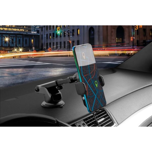 Univerzálny držiak do auta určený pre telefóny a navigácie. Umožňuje pohodlne umiestniť zariadenie na dohľad a do rúk vodiča. Odolný, ľahko použiteľný a vybavený silnou prísavkou, ktorá umožňuje pevné pripevnenie výrobku k čelnému sklu. Držiak a upevňovacie rameno s prísavkou sú súčasťou dodávky. Kľúčové vlastnosti * Farba: čierna * Místo montáže: na sklo * držiak telefónu * držiak s prísavkou * Vzdialenosť ramena: 4 - 10,5 cm * Dĺžka: 20 cm