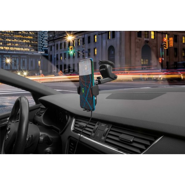 Samozatvárací držiak do auta s bezdrôtovým nabíjaním Aligator 3v1. Rýchle bezdrôtové nabíjanie chytrého telefónu s výkonom 15W a samozatváracie ramená, ktoré pomocou snímača automaticky zavria mobilný telefón a zabezpečia ho v najlepšej možnej polohe pre nabíjanie.