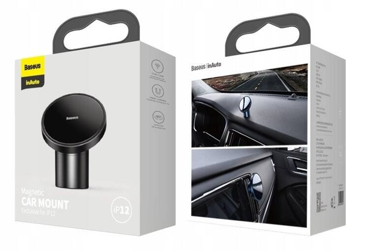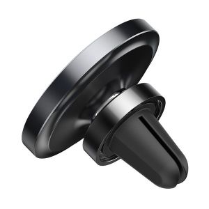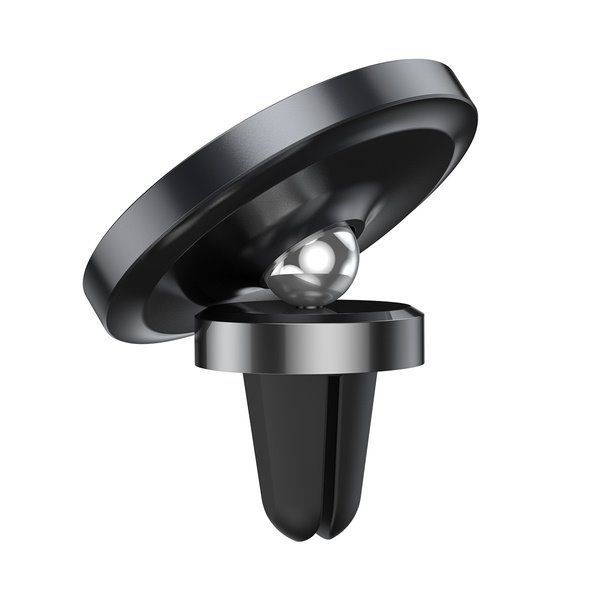 Magnetický držiak mobilného telefónu do mriežky ventilácie v aute. Súčasťou balenia je kovová samolepiaca guľatá destička a kovová obdĺžniková destička, ktorá sa vkladá pod kryt telefónu.