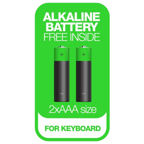 Ku klávesnici a myši sú rovno pribalené aj kvalitné alkalické batérie, takže môžete ísť do akcie hneď po vybalení setu z škatule. Klávesnica funguje na 2 mikrotužky (AAA), myši dodáva šťavu 1 tužková batéria (AA).