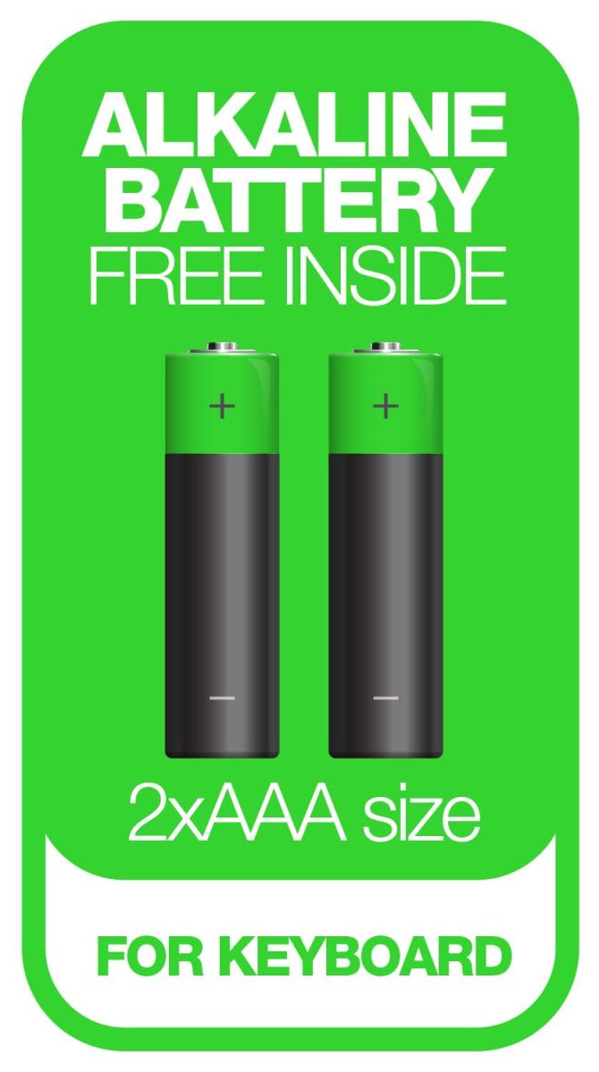 Ku klávesnici a myši sú rovno pribalené aj kvalitné alkalické batérie, takže môžete ísť do akcie hneď po vybalení setu z škatule. Klávesnica funguje na 2 mikrotužky (AAA), myši dodáva šťavu 1 tužková batéria (AA).