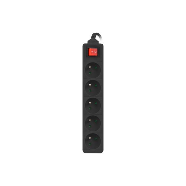 Predlžovací kábel Lanberg PS1 5 zásuvky 3m vypínač čierna PS1-05E-0300-BK