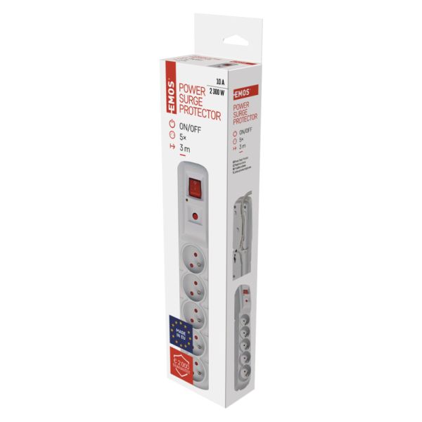 Značka EMOS Všeobecné číslo P53874 Číslo výrobku 1909050302 EAN 8595025386007 dĺžka 3 m počet zásuviek 5× 2P + PE farba šedá menovité napätie 250 V~, 50 Hz istenie poistka s čas. opožď. 10 A/250 V…