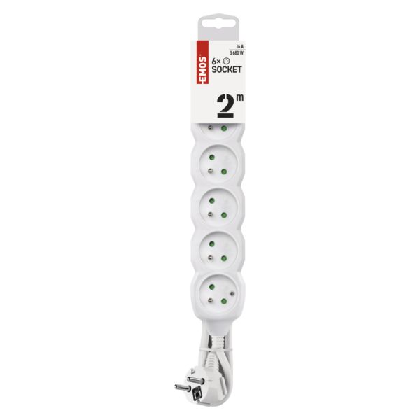 EMOS Predlžovací prívod 6Z/2m 3680W, PVC, biela 1902060200