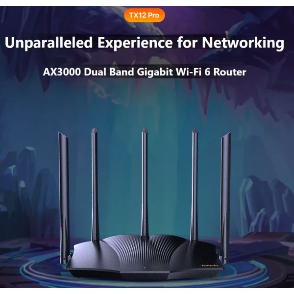 Tenda TX12 Pre AX3000 WiFi6 Router, 1x GWAN, 3x GLAN, IPv6, 5x 6dBi, WPA3, Mesh, SK app 75011973