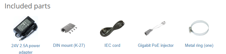 PoE support: Ports 2 - 5, 802.3af/at, max 1 A na port (input <30 V), max 450 mA na port (input> 30 V), max out total: 2 A