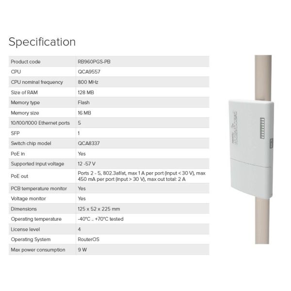 MIKROTIK RB960PGS-PB, 5xGB LAN, 1xSFP, 800MHz, 128RAM RB960PGS-PB