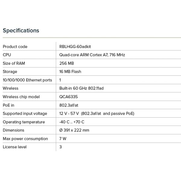 MikroTik RBLHGG-60ad, 60GHz Wireless Wire Dish jednotka RBLHGG-60ad