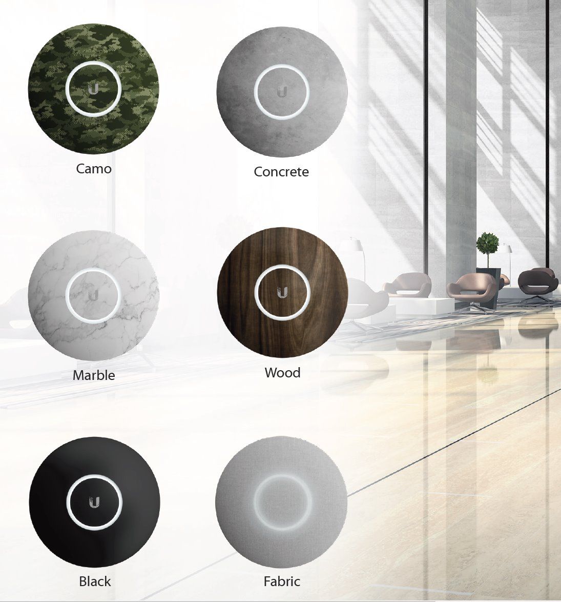 Ako prvá z rodiny UniFi bude mať tento model voliteľné šasi, ktoré bude možné dokúpiť a bude na výber z celkom 6tich rôznych vzorov – mramor, matná čierna, betón, drevo, tkanina a vojenské maskovanie.