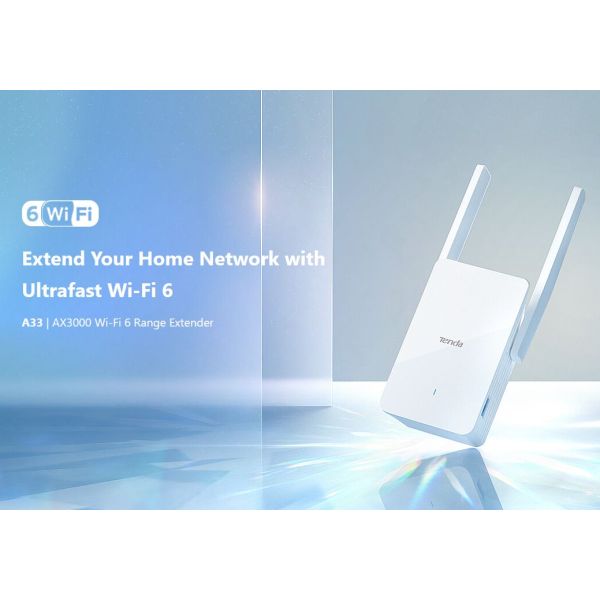 Opakovač WiFi signálu Tenda A33 slúži na rozšírenie a zosilnenie existujúcej bezdrôtovej WiFi siete. Účinne vykrýva miesta, kde je signál už slabý alebo úplne nedostupný. Používa moderné technológie pre šírenie WiFi signálu ako WiFi 6 - AX3000, MU-MIMO, podporuje WiFi+ Mesh a najnovšie zabezpečenie WPA3.
