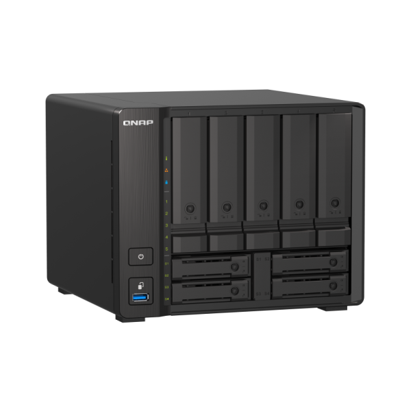 Zvýšte produktivitu svojho podniku pomocou štvorjadrového zariadenia QuTS Hero NAS s 9 pozíciami, ktoré podporuje U.2 NVMe SSD a pripojenie 10GbE/2,5GbE