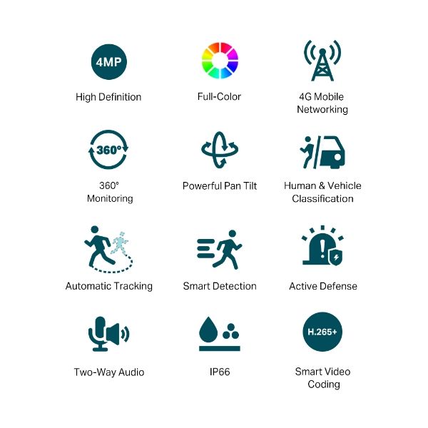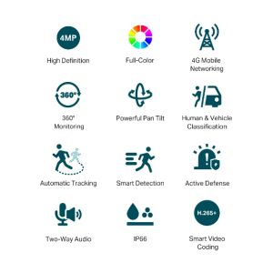 VIGI C540-4G VIGI 4MP vonkajšia plnofarebná 4GPan naklápacia sieťová kamera Funkcia 4MP Super-vysoké rozlišenie *Fotoaparát je dodávaný s rozlišením 4 MP – viac ako dostatočným počtom pixelov na…