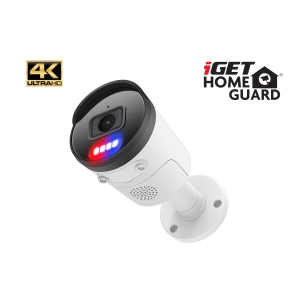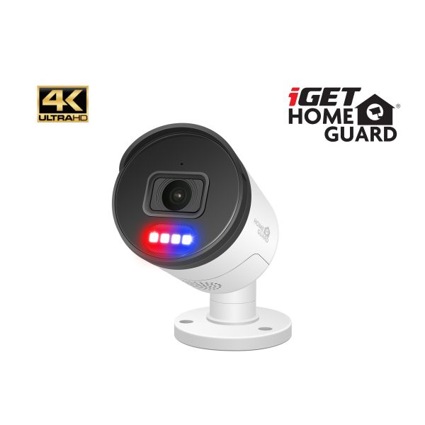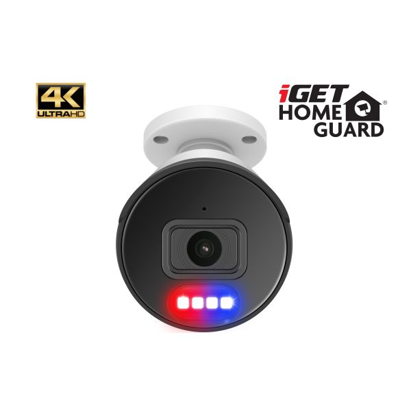 Vonkajšia odolná Ultra HD 4K (8MPx) kamera iGET HOMEGUARD HGNHK938CAM s obousmerným prenosom zvuku, farebným nočným videním, sirénou, PoE napájaním a SMART AI detekciou pohybu pomocou umelej inteligencie, je príslušenstvo ku kamerovému setu iGET 8. Rozlíšenie 4K (3840 x 2160) pre video vo veľmi vysokej kvalite, denný aj nočný prevádzku, nočné prisvetlenie až 40 m, odolnosť proti prachu a striekajúcej vode IP66. Uhol záberu 110°. LED svetlá pre výstrahu/svietenie a ďalšie červeno-modré LED pre výstrahu. Podpora OnViF (Ver. 2.6, Profile S, Profile G).