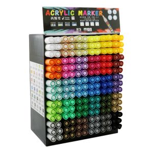 Stojan obsahuje mix 30 akrylových farieb - z každej po 6 ks. Dekoračný popisovač so šírkou hrotu 2 mm je vhodný na maľovanie povrchov ako: kameň, keramika, porcelán, sklo, drevo, textil, plátno, kov, drevo, plast, polymérová hlina a pod. Vysoko pigmentovaný akrylový atrament. Rýchlo schne, aby na svetlých a tmavých povrchoch vytvoril odolný a lesklý povrch. Atrament je odolný voči vode, vyblednutiu a oderu. Dĺžka popisovača 145 mm.