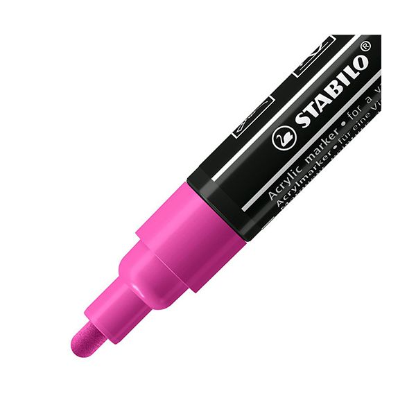 S radom STABILO FREE Acrylic Marker môžete takmer neobmedzene navrhovať a individualizovať. K dispozícii sú popisovače s tromi starostlivo vybranými variantmi hrotov a až 20 krycími farbami. Nepriehľadná a svetlostála pigmentová akrylová farba, vhodná na takmer všetky povrchy,od papiera cez kameň až po keramiku, umelú kožu a drevo. Každý môže nechať voľný priebeh svojej kreativite pri písaní, maľovaní, značkovaní, šrafovaní a kontúrovaní. Akrylový popisovač s pigmentovaným atramentom na vodnej báze - v troch šírkach stopy (T100, T300, T800C) s až 20 farbami - vhodný na rôzne povrchy, napr. papier, kartón, plátno, kameň alebo umelú kožu - nepriehľadný, permanentný, vodeodolný, ľahký a odolný voči poveternostným vplyvom -možno miešať a miešať s vodou - po zaschnutí, hodvábne matný a pretierateľný - vyrobený z 50% recyklovaného plastu - jednoduchá aktivácia pretrepaním po dobu 30 sekúnd a následné pumpovanie - horizontálne skladovanie pre dlhú životnosť