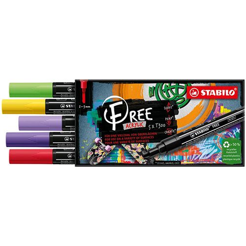 Akrylový popisovač STABILO FREE Acrylic T300 Okrúhly hrot 2-3 mm - Vibrant, sada 5 ks