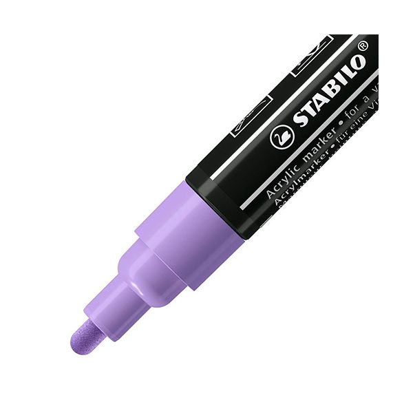 S radom STABILO FREE Acrylic Marker môžete takmer neobmedzene navrhovať a individualizovať. K dispozícii sú popisovače s tromi starostlivo vybranými variantmi hrotov a až 20 krycími farbami. Nepriehľadná a svetlostála pigmentová akrylová farba, vhodná na takmer všetky povrchy,od papiera cez kameň až po keramiku, umelú kožu a drevo. Každý môže nechať voľný priebeh svojej kreativite pri písaní, maľovaní, značkovaní, šrafovaní a kontúrovaní. Akrylový popisovač s pigmentovaným atramentom na vodnej báze - v troch šírkach stopy (T100, T300, T800C) s až 20 farbami - vhodný na rôzne povrchy, napr. papier, kartón, plátno, kameň alebo umelú kožu - nepriehľadný, permanentný, vodeodolný, ľahký a odolný voči poveternostným vplyvom -možno miešať a miešať s vodou - po zaschnutí, hodvábne matný a pretierateľný - vyrobený z 50% recyklovaného plastu - jednoduchá aktivácia pretrepaním po dobu 30 sekúnd a následné pumpovanie - horizontálne skladovanie pre dlhú životnosť