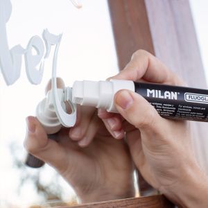 Popisovač MILAN FLUOGLASS 8-15 mm, biely